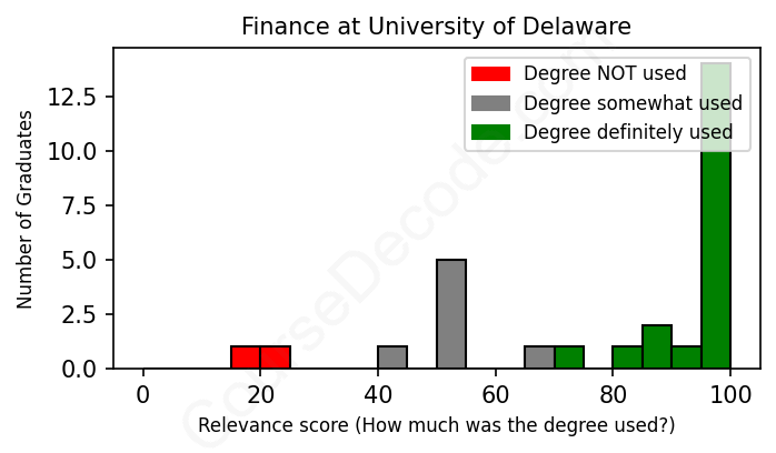 First, some facts. Of the Finance graduates from University of Delaware we've analyzed , here's how many have used (or NOT used) their degree in their career:
