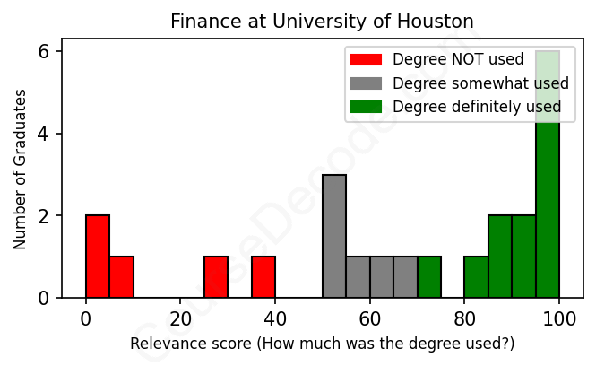 First, some facts. Of the Finance graduates from University of Houston we've analyzed , here's how many have used (or NOT used) their degree in their career: