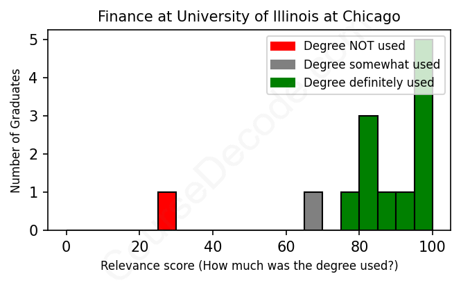 First, some facts. Of the Finance graduates from University of Illinois at Chicago we've analyzed , here's how many have used (or NOT used) their degree in their career: