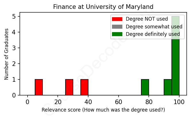 First, some facts. Of the Finance graduates from University of Maryland we've analyzed , here's how many have used (or NOT used) their degree in their career: