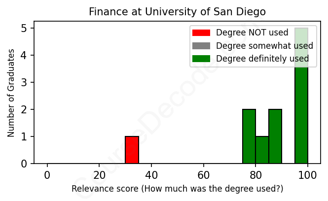 First, some facts. Of the Finance graduates from University of San Diego we've analyzed , here's how many have used (or NOT used) their degree in their career:
