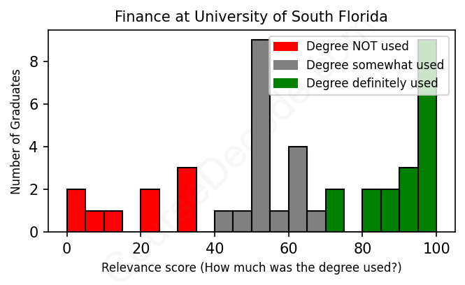 First, some facts. Of the Finance graduates from University of South Florida we've analyzed , here's how many have used (or NOT used) their degree in their career: