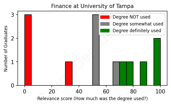 First, some facts. Of the Finance graduates from University of Tampa we've analyzed , here's how many have used (or NOT used) their degree in their career: