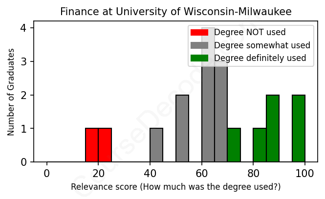 First, some facts. Of the Finance graduates from University of Wisconsin-Milwaukee we've analyzed , here's how many have used (or NOT used) their degree in their career: