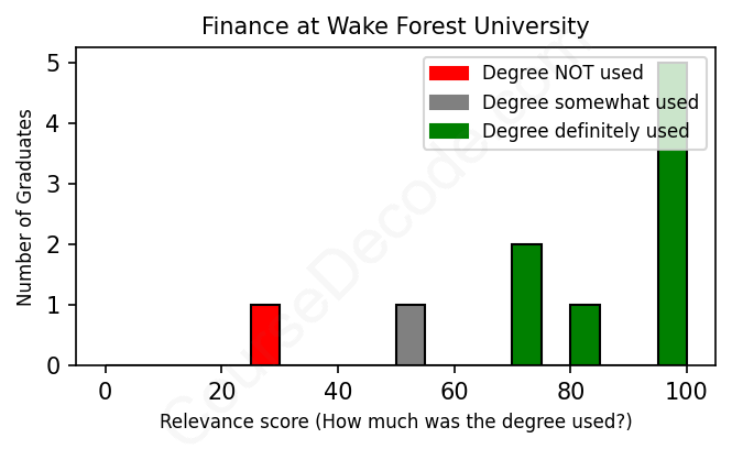 First, some facts. Of the Finance graduates from Wake Forest University we've analyzed , here's how many have used (or NOT used) their degree in their career: