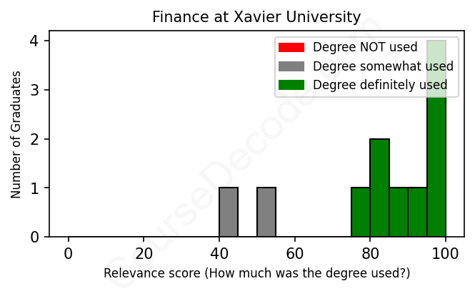 First, some facts. Of the Finance graduates from Xavier University we've analyzed , here's how many have used (or NOT used) their degree in their career: