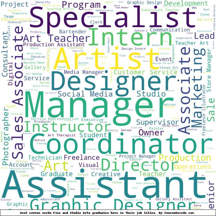 Here is a visual representation of the most common words in job titles for Fine and Studio Arts graduates: