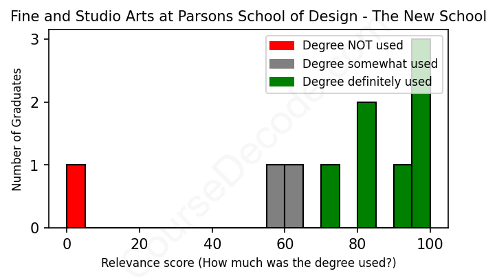 First, some facts. Of the Fine and Studio Arts graduates from Parsons School of Design - The New School we've analyzed , here's how many have used (or NOT used) their degree in their career: