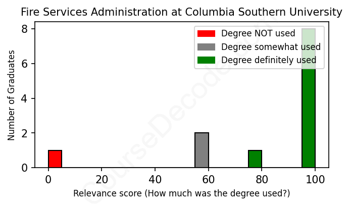 First, some facts. Of the Fire Services Administration graduates from Columbia Southern University we've analyzed , here's how many have used (or NOT used) their degree in their career: