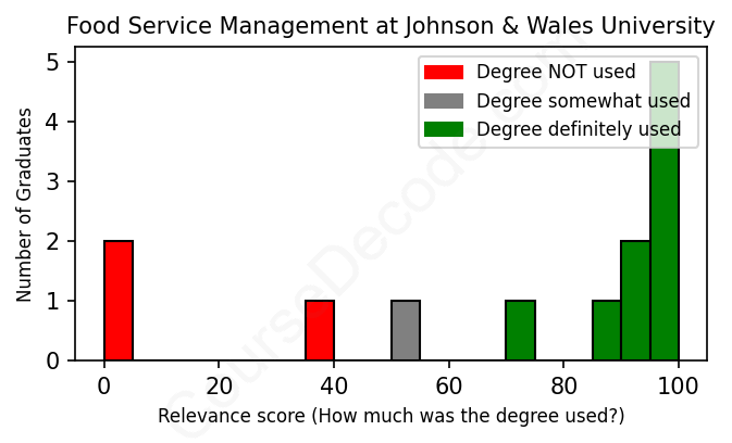 First, some facts. Of the Food Service Management graduates from Johnson & Wales University we've analyzed , here's how many have used (or NOT used) their degree in their career: