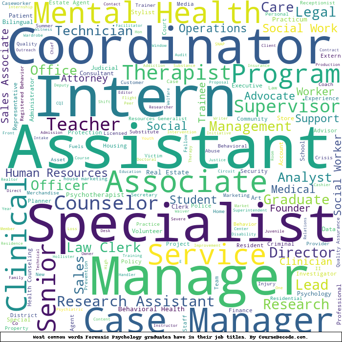 Here is a visual representation of the most common words in job titles for Forensic Psychology graduates: