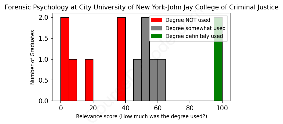 First, some facts. Of the Forensic Psychology graduates from City University of New York-John Jay College of Criminal Justice we've analyzed , here's how many have used (or NOT used) their degree in their career: