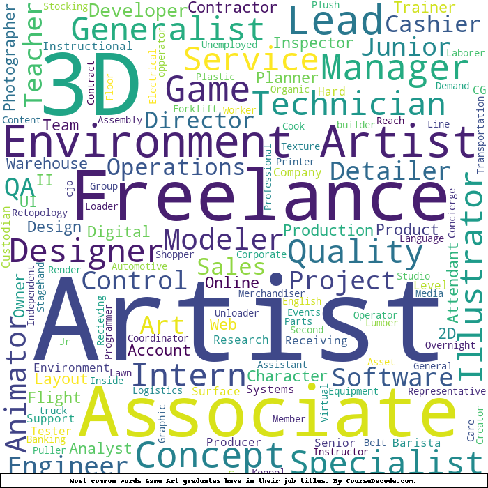 Here is a visual representation of the most common words in job titles for Game Art graduates: