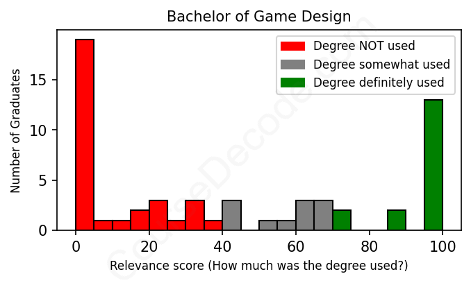 First, some facts. Of the Game Design graduates we've analyzed , here's how many have used (or NOT used) their degree in their career: