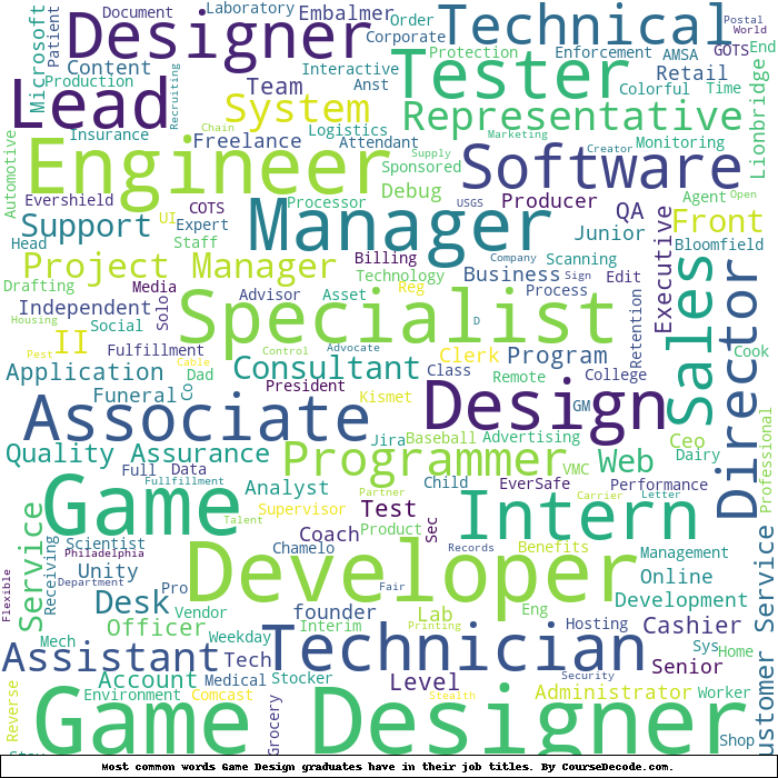 Here is a visual representation of the most common words in job titles for Game Design graduates: