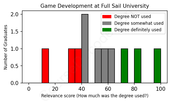 First, some facts. Of the Game Development graduates from Full Sail University we've analyzed , here's how many have used (or NOT used) their degree in their career: