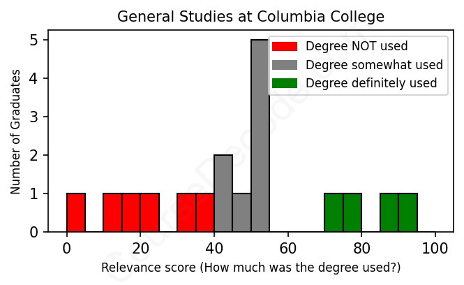 First, some facts. Of the General Studies graduates from Columbia College we've analyzed , here's how many have used (or NOT used) their degree in their career: