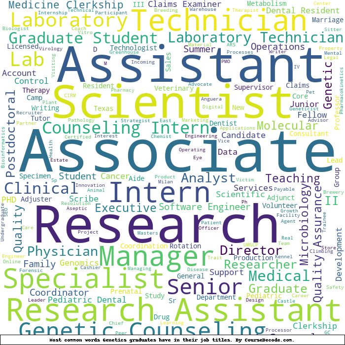 Here is a visual representation of the most common words in job titles for Genetics graduates: