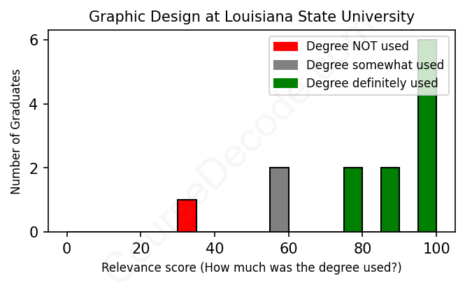 First, some facts. Of the Graphic Design graduates from Louisiana State University we've analyzed , here's how many have used (or NOT used) their degree in their career: