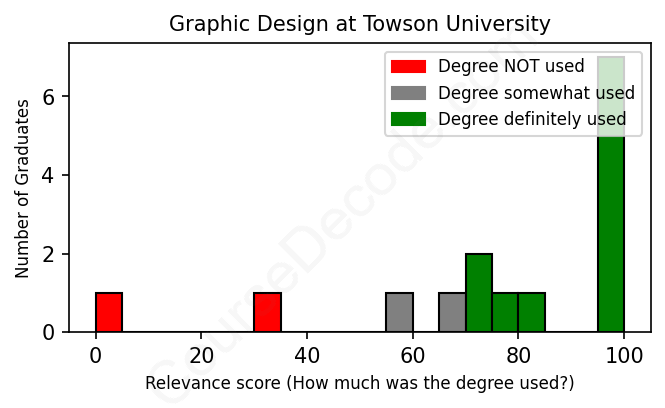 First, some facts. Of the Graphic Design graduates from Towson University we've analyzed , here's how many have used (or NOT used) their degree in their career: