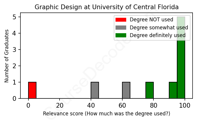 First, some facts. Of the Graphic Design graduates from University of Central Florida we've analyzed , here's how many have used (or NOT used) their degree in their career: