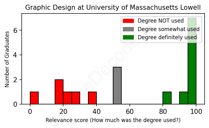 First, some facts. Of the Graphic Design graduates from University of Massachusetts Lowell we've analyzed , here's how many have used (or NOT used) their degree in their career: