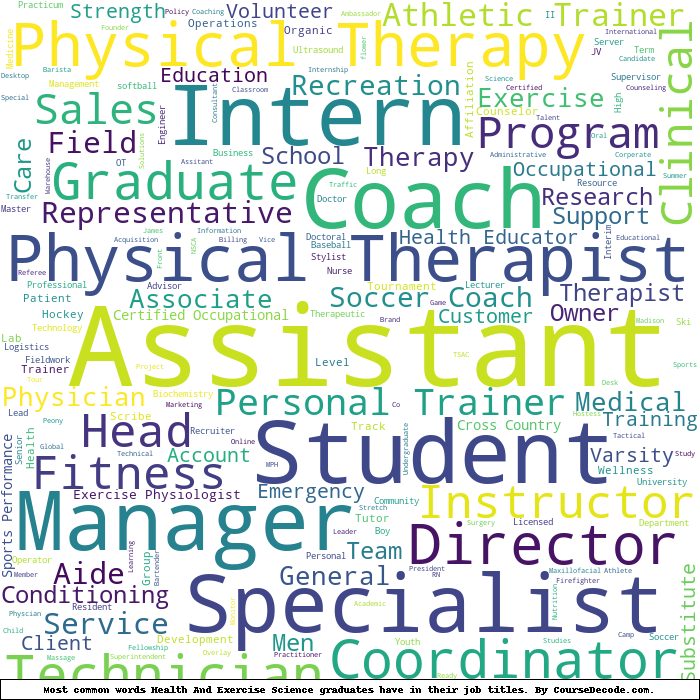Here is a visual representation of the most common words in job titles for Health And Exercise Science graduates:
