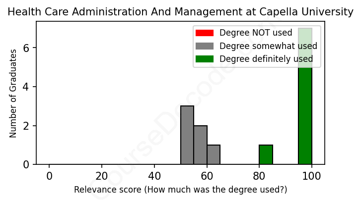 First, some facts. Of the Health Care Administration And Management graduates from Capella University we've analyzed , here's how many have used (or NOT used) their degree in their career: