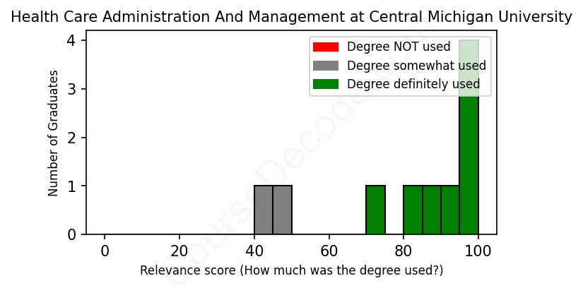 First, some facts. Of the Health Care Administration And Management graduates from Central Michigan University we've analyzed , here's how many have used (or NOT used) their degree in their career: