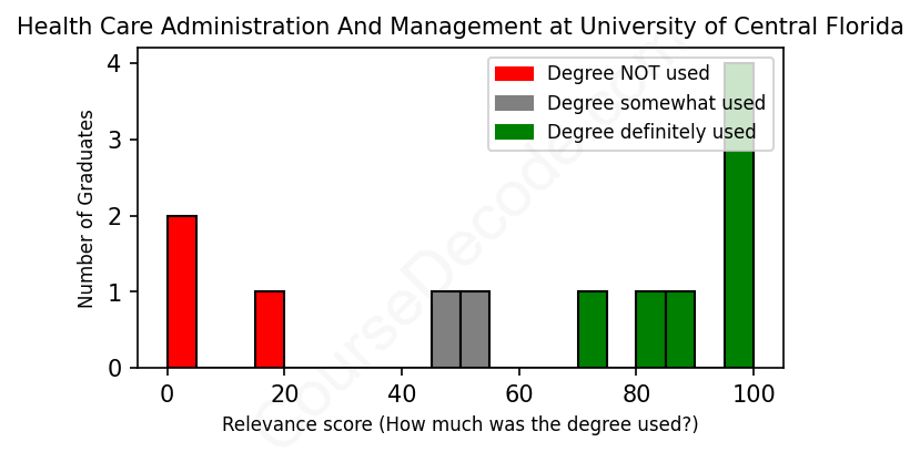First, some facts. Of the Health Care Administration And Management graduates from University of Central Florida we've analyzed , here's how many have used (or NOT used) their degree in their career: