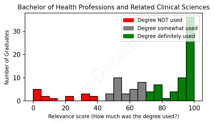 First, some facts. Of the Health Professions and Related Clinical Sciences graduates we've analyzed , here's how many have used (or NOT used) their degree in their career:
