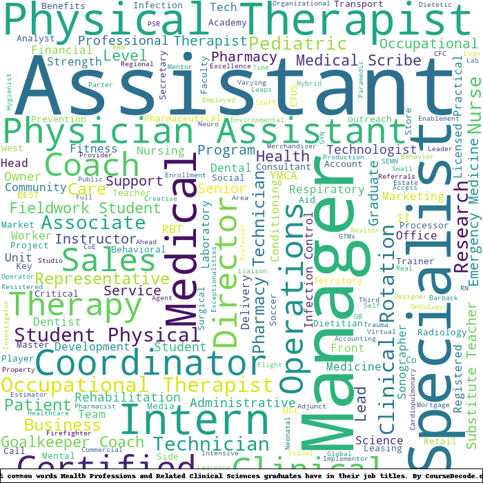 Here is a visual representation of the most common words in job titles for Health Professions and Related Clinical Sciences graduates: