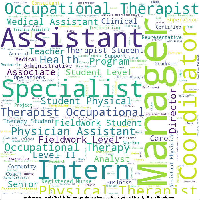 Here is a visual representation of the most common words in job titles for Health Science graduates:
