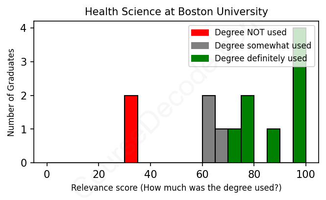 First, some facts. Of the Health Science graduates from Boston University we've analyzed , here's how many have used (or NOT used) their degree in their career: