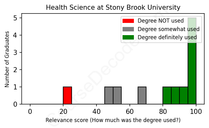 First, some facts. Of the Health Science graduates from Stony Brook University we've analyzed , here's how many have used (or NOT used) their degree in their career: