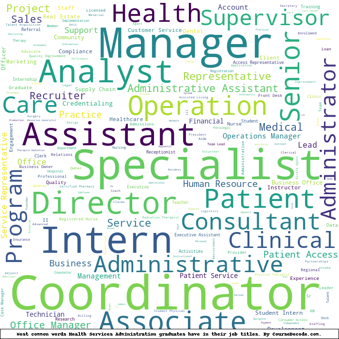 Here is a visual representation of the most common words in job titles for Health Services Administration graduates:
