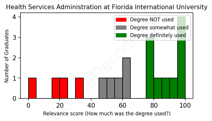 First, some facts. Of the Health Services Administration graduates from Florida International University we've analyzed , here's how many have used (or NOT used) their degree in their career: