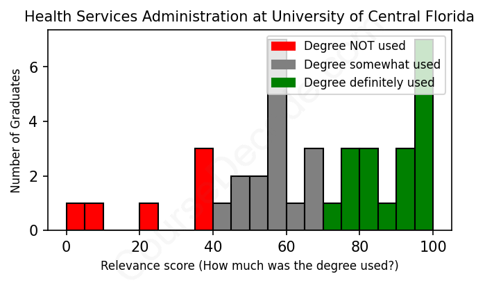 First, some facts. Of the Health Services Administration graduates from University of Central Florida we've analyzed , here's how many have used (or NOT used) their degree in their career: