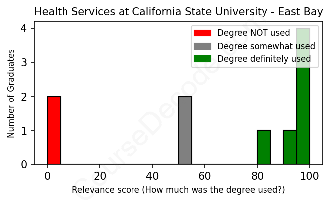 First, some facts. Of the Health Services graduates from California State University - East Bay we've analyzed , here's how many have used (or NOT used) their degree in their career: