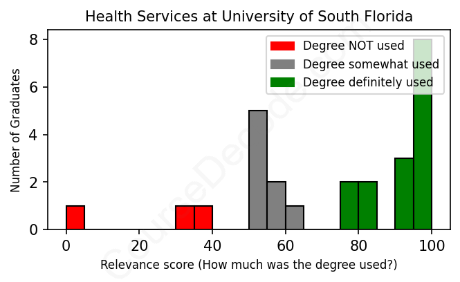 First, some facts. Of the Health Services graduates from University of South Florida we've analyzed , here's how many have used (or NOT used) their degree in their career: