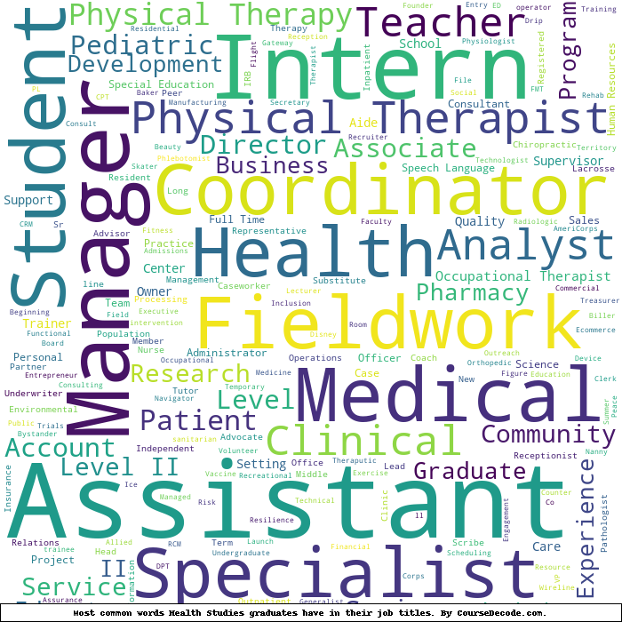 Here is a visual representation of the most common words in job titles for Health Studies graduates: