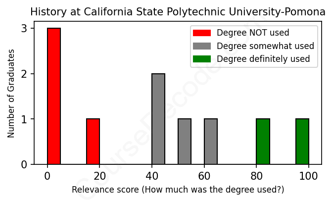 First, some facts. Of the History graduates from California State Polytechnic University-Pomona we've analyzed , here's how many have used (or NOT used) their degree in their career: