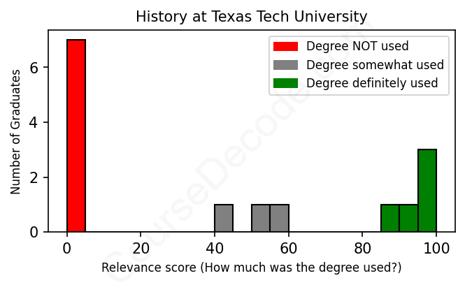First, some facts. Of the History graduates from Texas Tech University we've analyzed , here's how many have used (or NOT used) their degree in their career:
