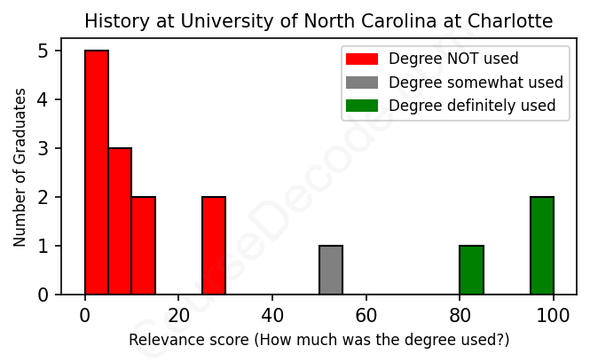 First, some facts. Of the History graduates from University of North Carolina at Charlotte we've analyzed , here's how many have used (or NOT used) their degree in their career:
