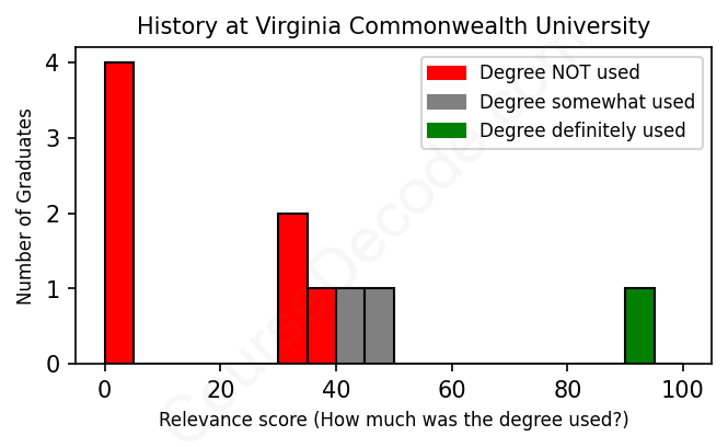 First, some facts. Of the History graduates from Virginia Commonwealth University we've analyzed , here's how many have used (or NOT used) their degree in their career: