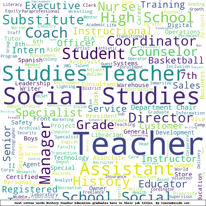 Here is a visual representation of the most common words in job titles for History Teacher Education graduates: