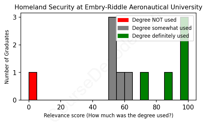 First, some facts. Of the Homeland Security graduates from Embry-Riddle Aeronautical University we've analyzed , here's how many have used (or NOT used) their degree in their career: