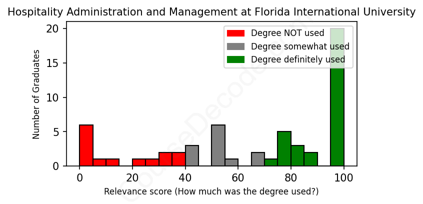 First, some facts. Of the Hospitality Administration and Management graduates from Florida International University we've analyzed , here's how many have used (or NOT used) their degree in their career:
