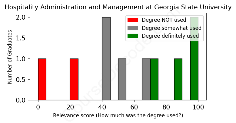 First, some facts. Of the Hospitality Administration and Management graduates from Georgia State University we've analyzed , here's how many have used (or NOT used) their degree in their career:
