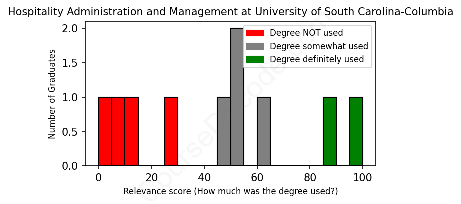 First, some facts. Of the Hospitality Administration and Management graduates from University of South Carolina-Columbia we've analyzed , here's how many have used (or NOT used) their degree in their career: